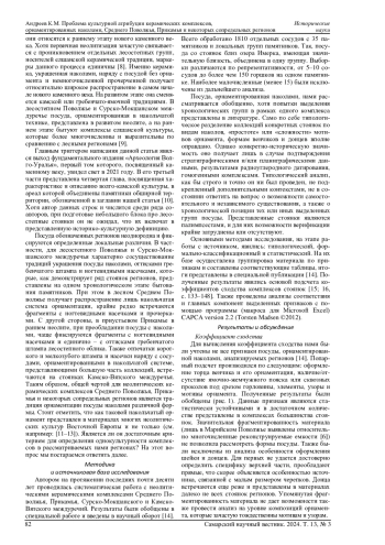Керамические комплексы обозначенных в названии работы регионов в раннем и/или развитом неолите представлены сосудами, украшенными наколами различной формы. Иногда данная система орнаментации сосуществует с традицией нанесения оттисков гребенчатого штампа, ногтевидных насечек и неорнаментированной посудой, но всегда образует существенную часть коллекции той или иной стоянки. В представленной статье мы рассматриваем вопрос о том, является ли наличие накольчатого орнамента достаточным критерием для отнесения материалов к одной культуре. Ранее нами была проведена непосредственная работа с керамическими коллекциями большинства опорных стоянок Среднего Поволжья, Прикамья, Камско-Вятского и Сурско-Мокшанского междуречий. На базе типологического, формально-классификационного и статистического методов осуществлена их группировка, итоги опубликованы. Результаты нами использованы для подсчета коэффициента сходства между памятниками. Также проведены анализ соответствия и главных компонент. Данные, полученные в ходе применения обозначенных трех подходов, не противоречат друг другу. Они позволяют обосновать возможность разделения изученных памятников на две культурные традиции: волго-камскую лесную и средневолжскую лесостепную. Также допустимо ставить вопрос о выделении локальных вариантов в рамках обозначенных дефиниций: в волго-камской (Марийского, Нижнекамского и Камско-Вятского), а также двух в границах средневолжской культуры (Поволжского и Сурско-Мокшанского). При этом их наименование, содержательное наполнение и точные ареалы должны уточниться в ходе дальнейшего изучения. Предлагаемые выводы будут способствовать разрешению терминологических противоречий, возникающих при работе с неолитическими керамическими комплексами Поволжья, Прикамья и некоторых сопредельных регионов.