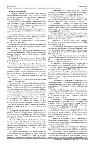 18. Морозов В.В. Керамика опорных памятников камской неолитической культуры в Нижнем Прикамье // Археология евразийских степей. 2020. № 3. С. 330-353. EDN: MNUMNG