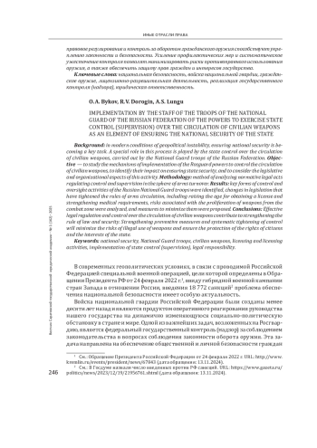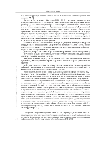 Ключевые фразы: национальная безопасность, ВОЙСКА НАЦИОНАЛЬНОЙ ГВАРДИИ, гражданское оружие, лицензионно-разрешительная деятельность, реализация государственного контроля (надзора), ЮРИДИЧЕСКАЯ ОТВЕТСТВЕННОСТЬ