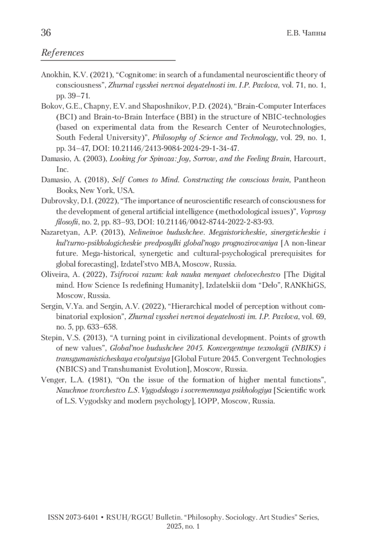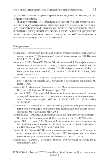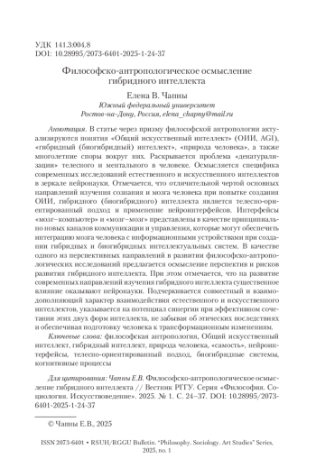 ЧАПНЫ Е. В. ФИЛОСОФСКО-АНТРОПОЛОГИЧЕСКОЕ ОСМЫСЛЕНИЕ ГИБРИДНОГО ИНТЕЛЛЕКТА // ВЕСТНИК РГГУ. СЕРИЯ: ФИЛОСОФИЯ. СОЦИОЛОГИЯ. ИСКУССТВОВЕДЕНИЕ. 2025. № 1
