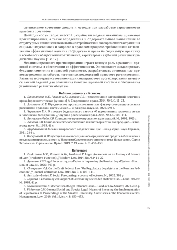 Результаты: аргументирована позиция автора о необходимости разработки механизма правового прогнозирования и содержательном наполнении его структурных компонентов.