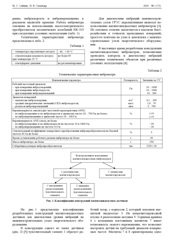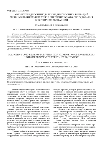 Статья: МАГНИТОЖИДКОСТНЫЕ ДАТЧИКИ ДИАГНОСТИКИ ВИБРАЦИЙ МАШИНОСТРОИТЕЛЬНЫХ УЗЛОВ ЭНЕРГЕТИЧЕСКОГО ОБОРУДОВАНИЯ ЭЛЕКТРИЧЕСКИХ СТАНЦИЙ (2025)