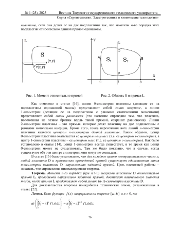 Рассмотрено понятие момента n-го порядка плоской пластины относительно заданной прямой. Прямая является линией n-симметрии в том случае, если моменты n-го порядка двух подпластин, на которые исходная пластина делится этой прямой, одинаковы. Установлено, что момент n-го порядка выпуклой плоской пластины относительно прямой L, проводимой параллельно данной прямой, достигает наименьшего значения тогда, когда прямая L представляет собой линию (n-1)-симметрии пластины