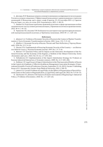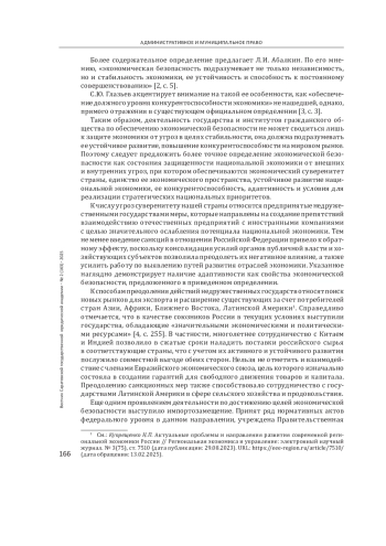 Результаты: выявлена необходимость корректировки нормативного определения термина «экономическая безопасность», предложены изменения в правовых актах по вопросам развития экономических кластеров и территорий опережающего развития.