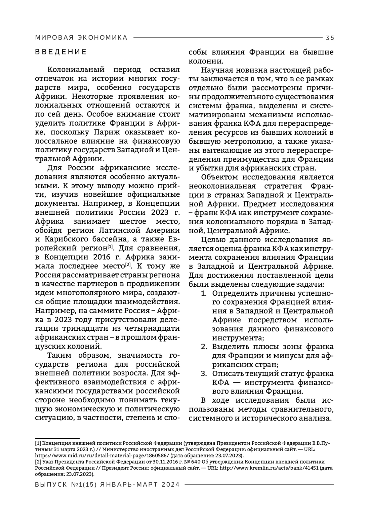 Цель настоящего исследования состоит в том, чтобы установить причины успеха Франции в сохранении зоны франка, а также в том, чтобы определить выгоды, которые получает Франция, и убытки, которые несут африканские страны от сохранения системы франка КФА.