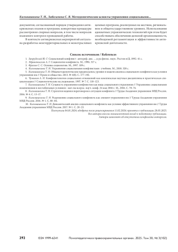 1. Запрудский Ю. Г. Социальный конфликт : автореф. дис. ... д-ра филос. наук. Ростов н/Д, 1992. 41 с.