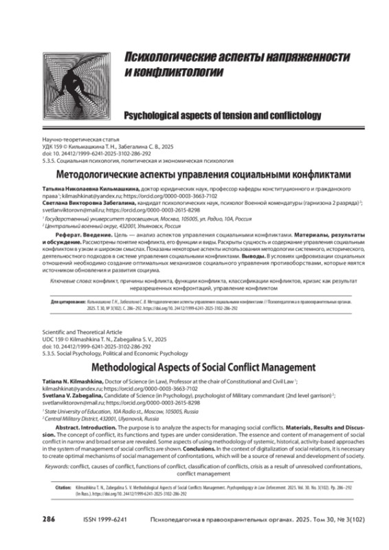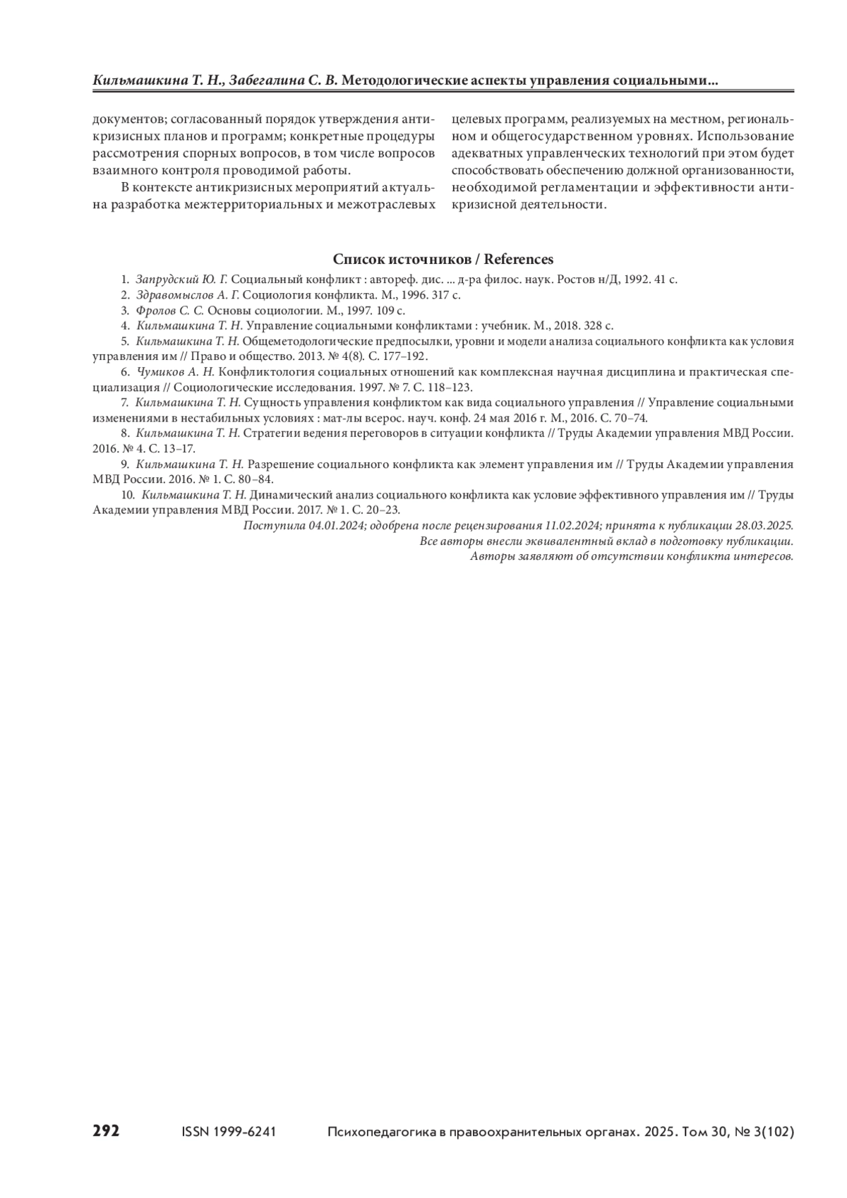 10. Кильмашкина Т. Н. Динамический анализ социального конфликта как условие эффективного управления им // Труды Академии управления МВД России. 2017. № 1. С. 20–23.