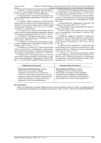 2. Климова А.С., Красинская Л.Ф. Индивидуальные образовательные траектории аспирантов: принципы проектирования и условия внедрения (на примере технического вуза) // Высшее образование в России. 2021. Т. 30, № 11. С. 110-124. DOI: 10.31992/0869-3617-2021-30-11-110-124 EDN: KUAEUY