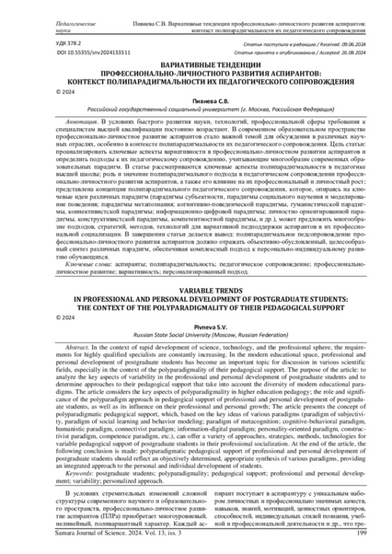 28. Пивнева С.В., Вольхин С.Н. Научно-методические аспекты педагогического сопровождения профессиональной социализации аспирантов // Проблемы современного педагогического образования. 2024. № 83-1. С. 200-203. EDN: BUAHWB