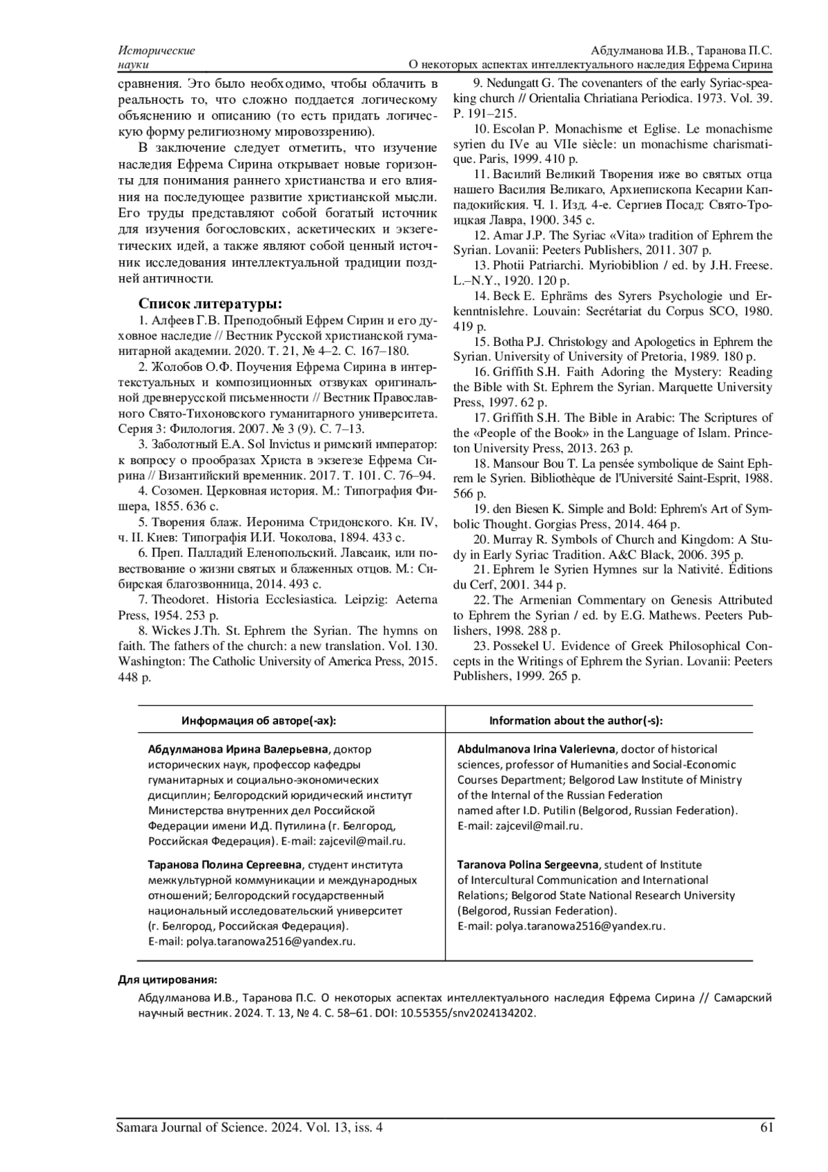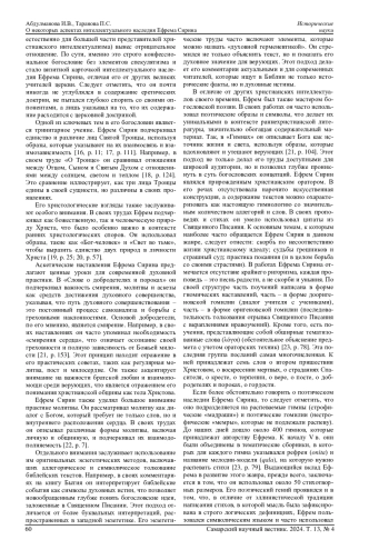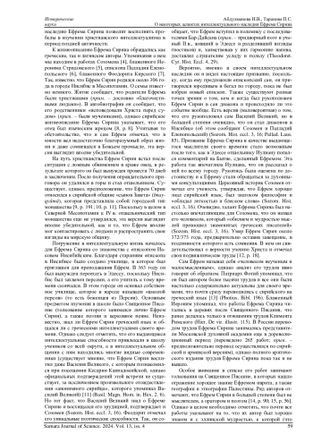 АБДУЛМАНОВА И. В., ТАРАНОВА П. С. О НЕКОТОРЫХ АСПЕКТАХ ИНТЕЛЛЕКТУАЛЬНОГО НАСЛЕДИЯ ЕФРЕМА СИРИНА // САМАРСКИЙ НАУЧНЫЙ ВЕСТНИК. 2024. ТОМ 13, № 4