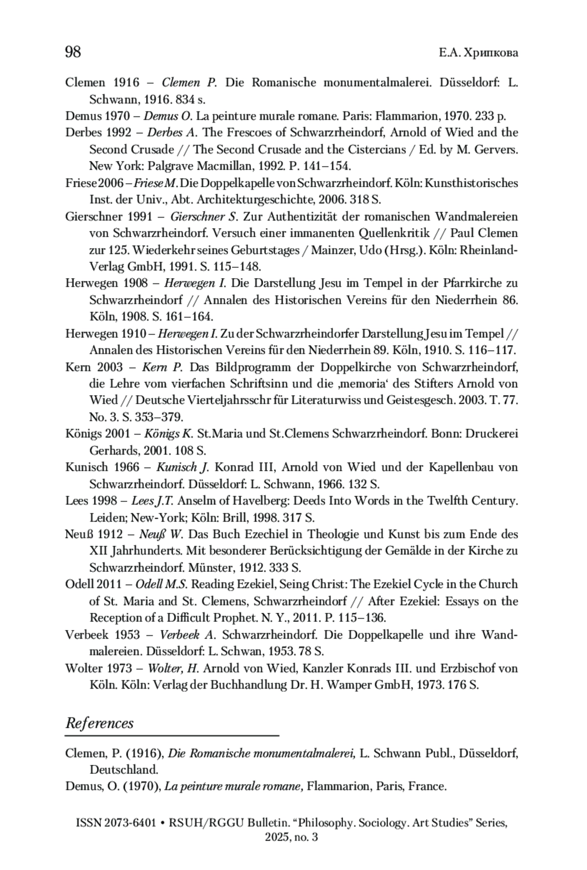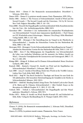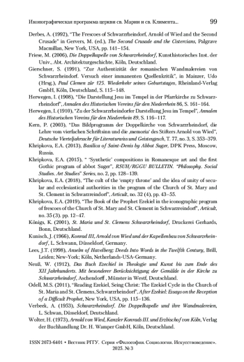 4. Хрипкова 2019 - Хрипкова Е.А. Книга пророка Иезекииля в иконографической программе фресок церкви св. Марии и св. Климента в Шварцрейндорфе // Артикульт. 2019. № 35 (3). C. 12-47.