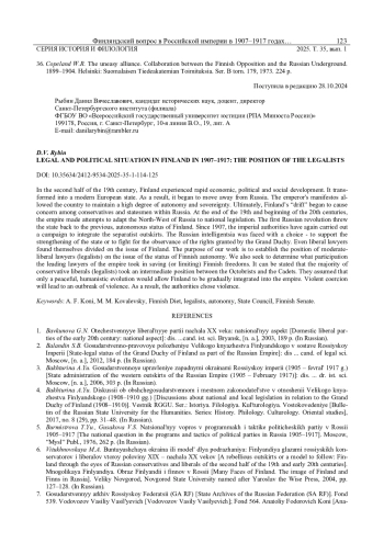 35. Copeland W.R. Relations Between the Finnish Resistance Movement and the Russian Liberals, 1899-1904 // Essays on Russian Liberalism / ed. by Ch. E. Timberlake. Columbia, 1972. Pp. 90-118.
