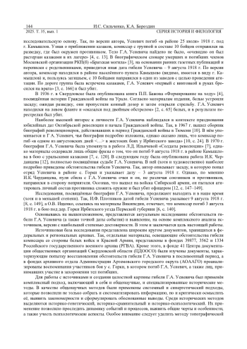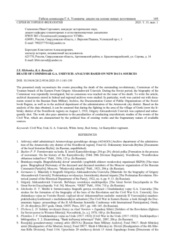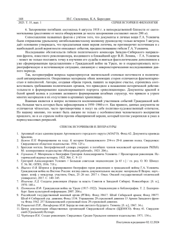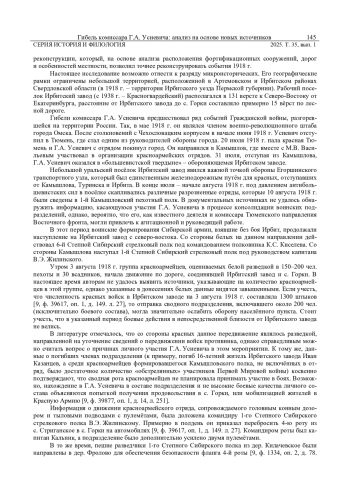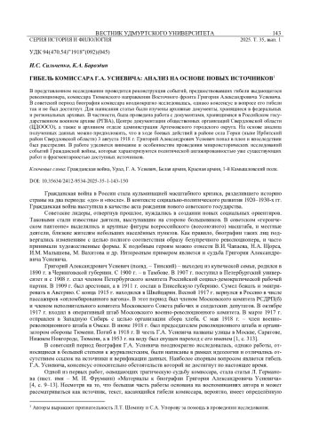 СИЛЬЧЕНКО И. С., БОРОЗДИН К. А. ГИБЕЛЬ КОМИССАРА Г. А. УСИЕВИЧА: АНАЛИЗ НА ОСНОВЕ НОВЫХ ИСТОЧНИКОВ // ВЕСТНИК УДМУРТСКОГО УНИВЕРСИТЕТА. СЕРИЯ: ИСТОРИЯ И ФИЛОЛОГИЯ. 2025. Т. 35 № 1