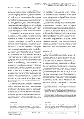 3. Кузина С.И., Сагирян И.Г., Краснова Е.А. Военная политика России на современном этапе: политико-правовые аспекты // Наука и образование: хозяйство и экономика; предпринимательство; право и управление. 2023. № 5 (156). С. 121-125. EDN: RHMDJO