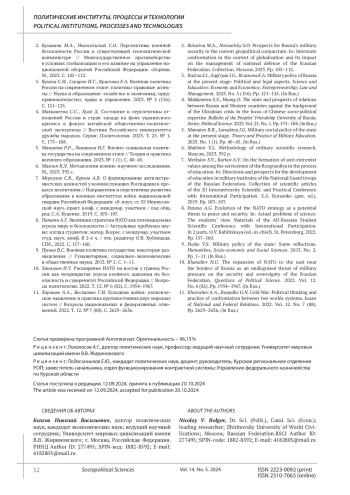 Bulavina M.A., Novoselsky S.O. Prospects for Russia’s military security in the current geopolitical conjuncture. In: Interstate confrontation in the context of globalization and its impact on the management of national defense of the Russian Federation. Collection. Moscow, 2023. Pp. 105-112.
