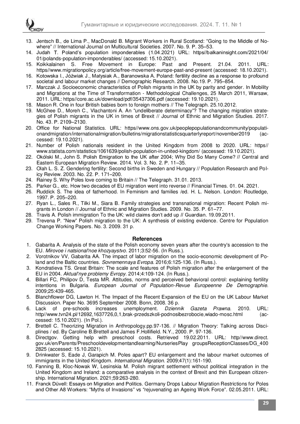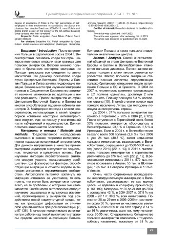 Статья: Польская эмиграция в Великобританию: социальная структура и проблемы адаптации (2024)
