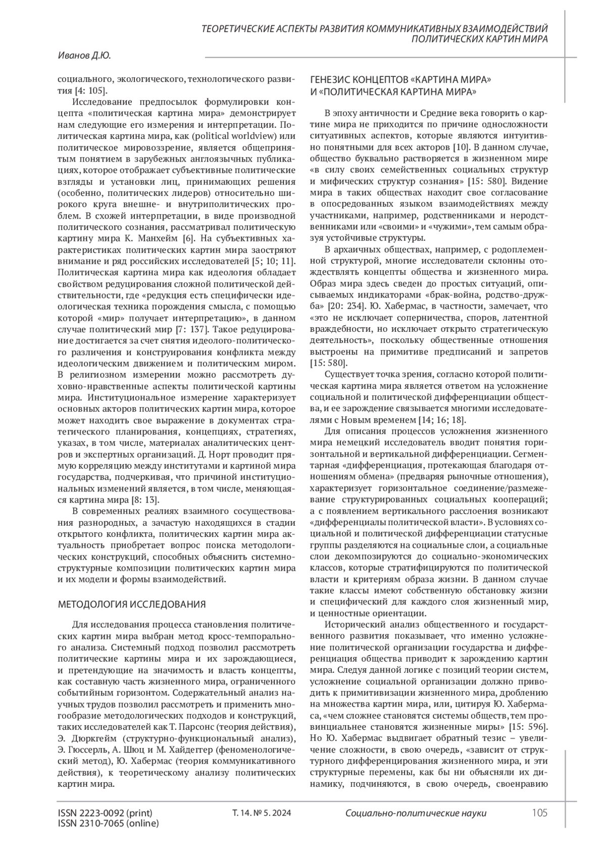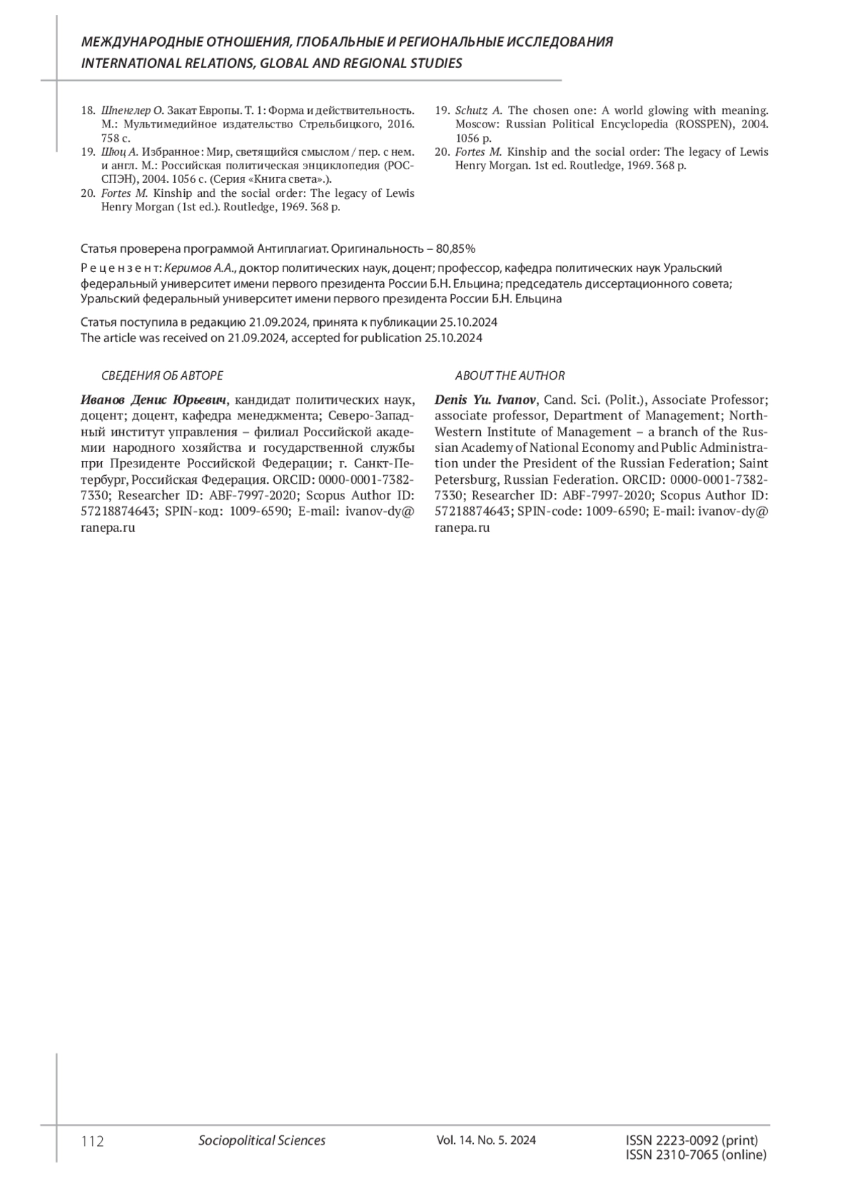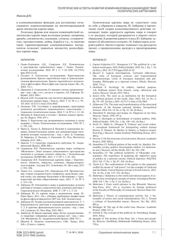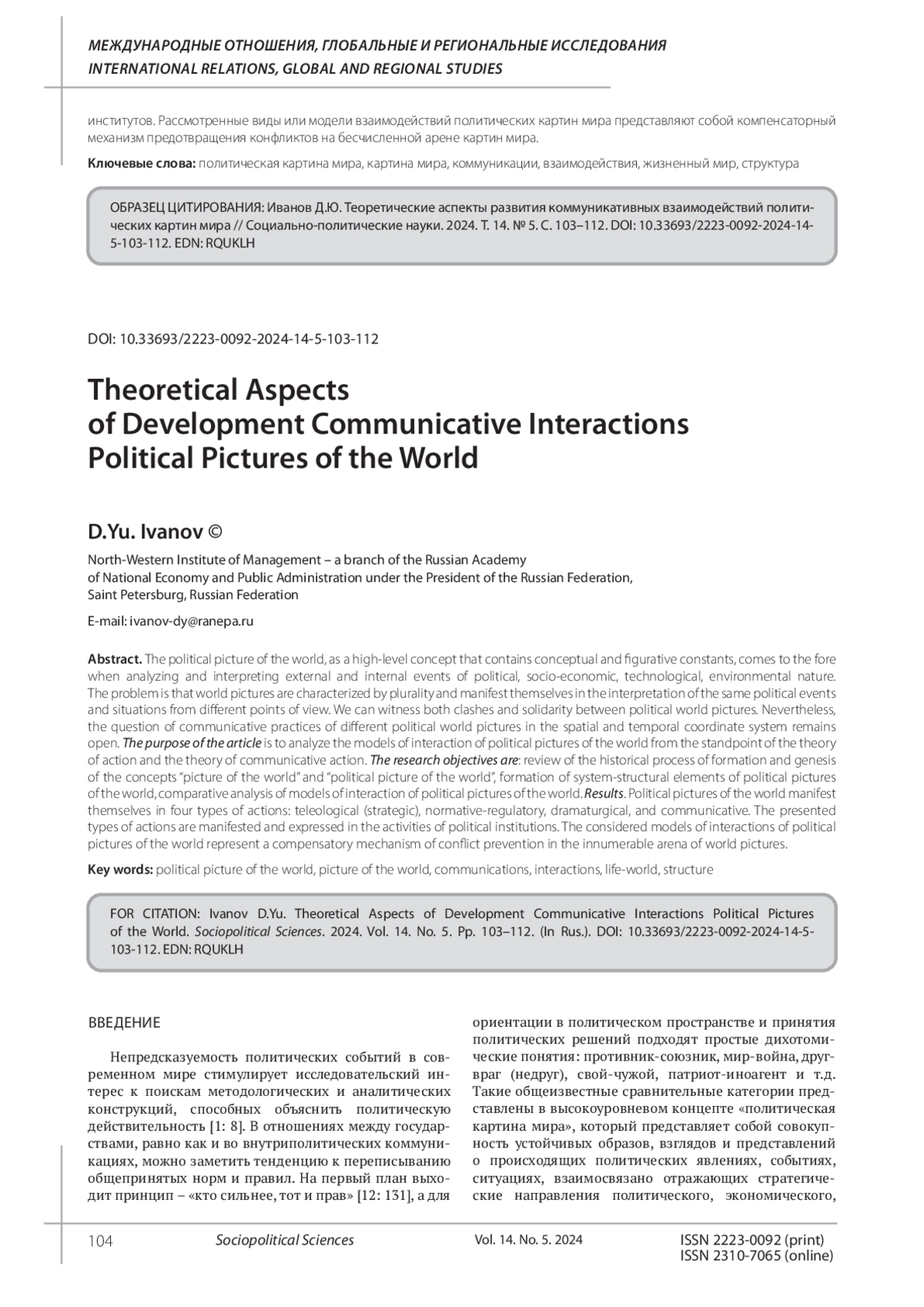 4. Иванов Д.Ю. Государство как институт формирования политических картин мира // Власть. 2023. Т. 31. № 6. С. 99-107. DOI: 10.31171/vlast.v31i6.9863 EDN: SFMTFW