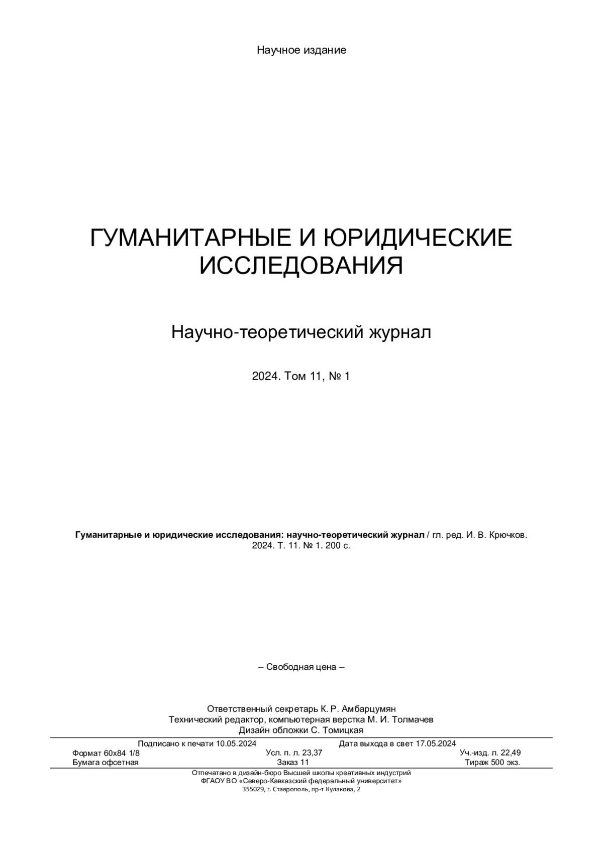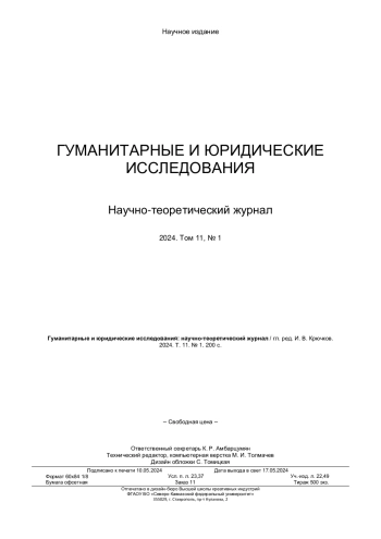 Журнал: ГУМАНИТАРНЫЕ И ЮРИДИЧЕСКИЕ ИССЛЕДОВАНИЯ