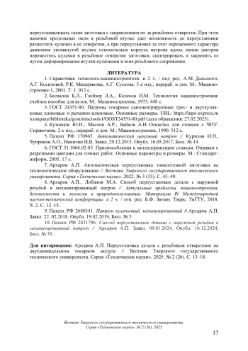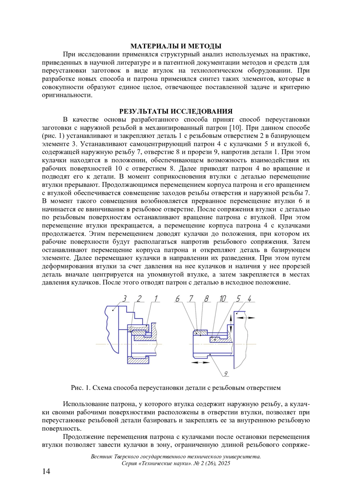 АРХАРОВ А. П. ПЕРЕУСТАНОВКА ДЕТАЛИ С РЕЗЬБОВЫМ ОТВЕРСТИЕМ НА ДВУХШПИНДЕЛЬНОМ ТОКАРНОМ МОДУЛЕ // ВЕСТНИК ТВЕРСКОГО ГОСУДАРСТВЕННОГО ТЕХНИЧЕСКОГО УНИВЕРСИТЕТА. СЕРИЯ: ТЕХНИЧЕСКИЕ НАУКИ. 2025. № 2 (26)