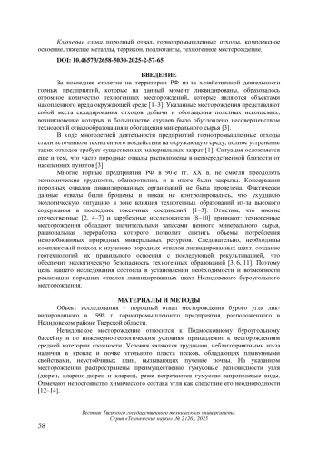 ЛОБАЧЕВА Л. В. ОБОСНОВАНИЕ НЕОБХОДИМОСТИ И ВОЗМОЖНОСТИ ОСВОЕНИЯ ПОРОДНЫХ ОТВАЛОВ ЛИКВИДИРОВАННЫХ ШАХТ НЕЛИДОВСКОГО БУРОУГОЛЬНОГО МЕСТОРОЖДЕНИЯ // ВЕСТНИК ТВЕРСКОГО ГОСУДАРСТВЕННОГО ТЕХНИЧЕСКОГО УНИВЕРСИТЕТА. СЕРИЯ: ТЕХНИЧЕСКИЕ НАУКИ. 2025. № 2 (26)