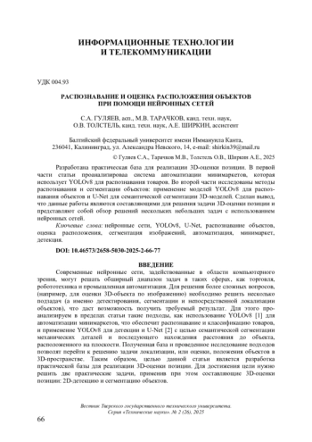 12. Ширкин А.Е., Калабин А.Л., Толстель О.В. Оценка 6D-позиции объекта с выбором целевого объекта на изображении для робототехнических задач // Гибридные и синергетические интеллектуальные системы: Сборник статей по материалам VII Всероссийской Поспеловской конференции / отв. ред. А.В. Колесников. СПб.: РХГА, 2024. С. 391-398.