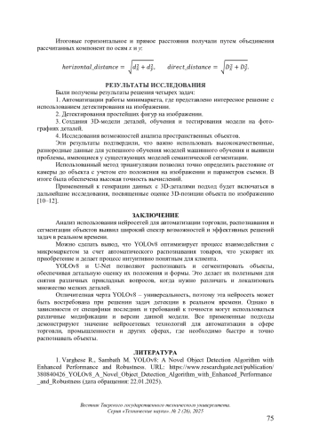 1. Varghese R., Sambath M. YOLOv8: A Novel Object Detection Algorithm with Enhanced Performance and Robustness. URL: https://www.researchgate.net/publication/380840426_YOLOv8_A_Novel_Object_Detection_Algorithm_with_Enhanced_Performance_and_Robustness (дата обращения: 22.01.2025).