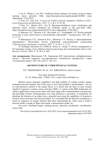 ВИНОГРАДОВ Г. П., КИРСАНОВА Н. В. АРХИТЕКТУРА КИБЕРФИЗИЧЕСКИХ СИСТЕМ // ВЕСТНИК ТВЕРСКОГО ГОСУДАРСТВЕННОГО ТЕХНИЧЕСКОГО УНИВЕРСИТЕТА. СЕРИЯ: ТЕХНИЧЕСКИЕ НАУКИ. 2025. № 2 (26)