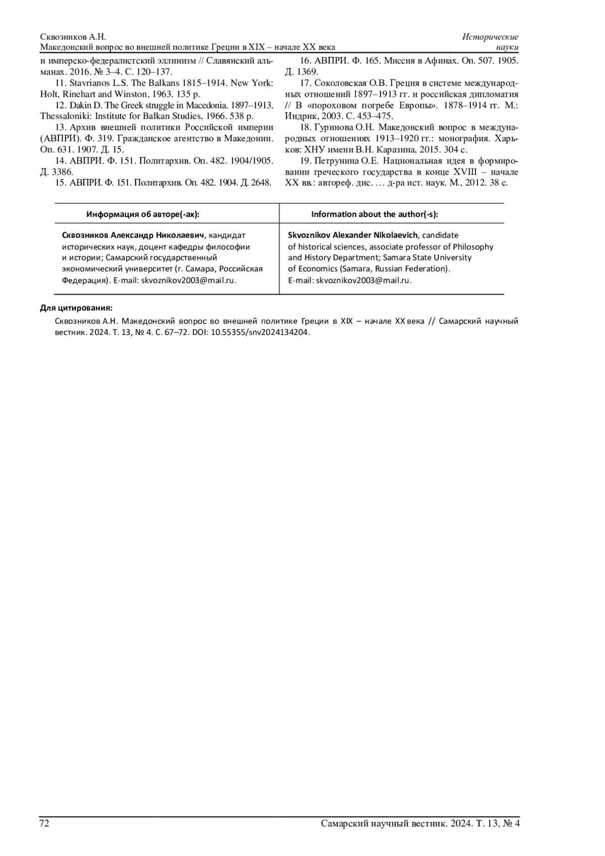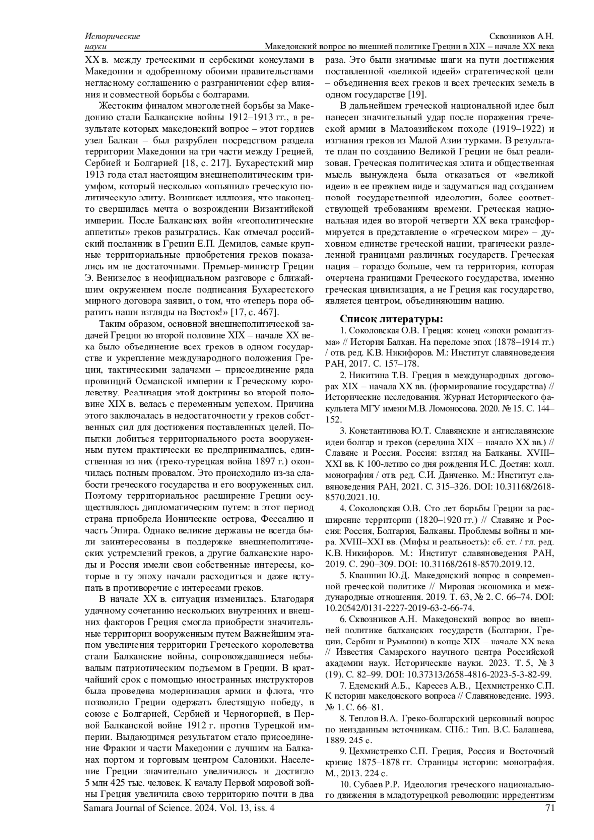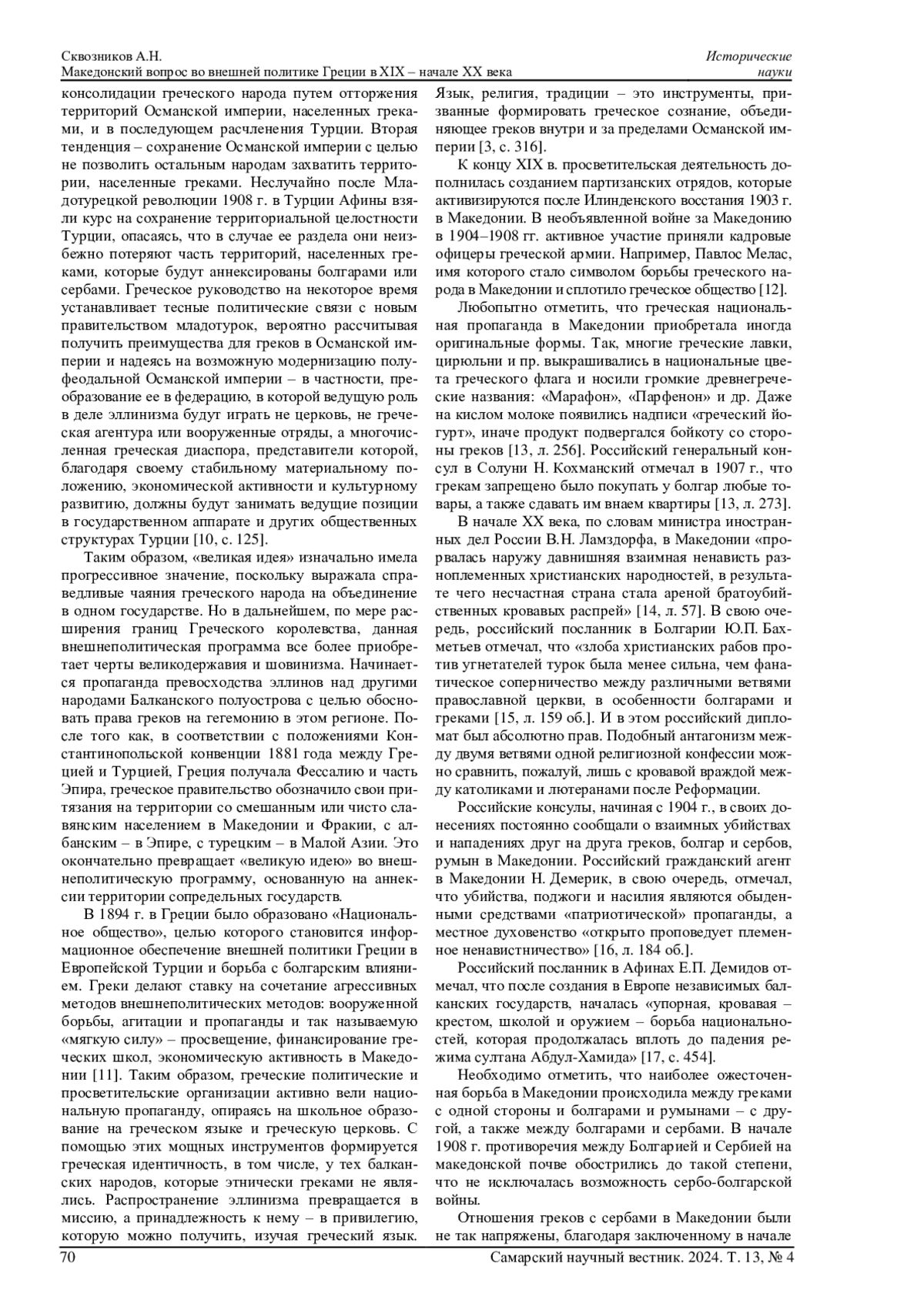 СКВОЗНИКОВ А. Н. МАКЕДОНСКИЙ ВОПРОС ВО ВНЕШНЕЙ ПОЛИТИКЕ ГРЕЦИИ В XIX - НАЧАЛЕ XX ВЕКА // САМАРСКИЙ НАУЧНЫЙ ВЕСТНИК. 2024. ТОМ 13, № 4