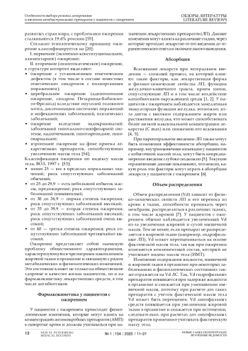Исследование включает анализ современных научных публикаций, клинических рекомендаций и фармакокинетических данных, касающихся применения антибиотиков у пациентов с ожирением. Особое внимание уделяется изменению объема распределения, клиренсу, и коррекции доз в зависимости от индекса массы тела и других метаболических изменений, связанных с ожирением.