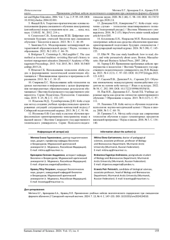14. Козленкова Е.Н., Некрасова М.И. Использование электронных кейсов как средства обеспечения практико-ориентированной подготовки будущих специалистов // Международный научный журнал. 2024. № 5 (98). С. 145-155. EDN: XIKHQK
