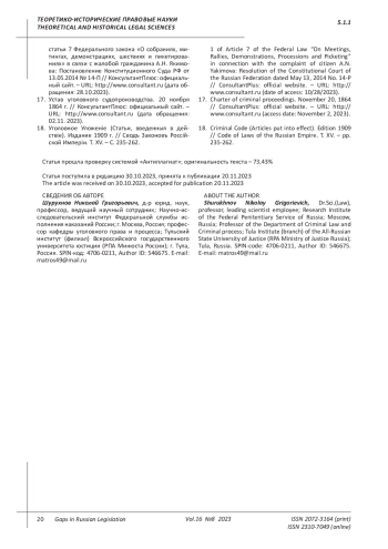 Charter of criminal proceedings. November 20, 1864 // ConsultantPlus: official website. - URL: http://www.consultant.ru (access date: November 2, 2023).