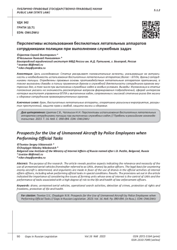 Military-industrial complex news. Interest in the use of UAVs in the Ministry of Internal Affairs system is constantly increasing // [Electronic resource] URL: https://vpk.name/news/13599_interes_k_primeneniyu_bla_v_sisteme_mvd_postoyanno_vozrastaet (access date: 11/30/2023).