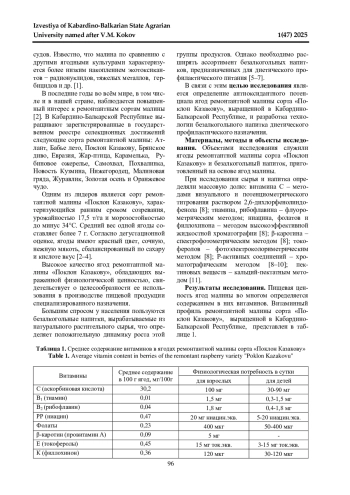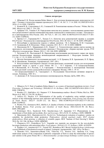 4. Причко Т. Г., Германова М. Г., Хилько Л. А. Качество ягод ремонтантной малины в условиях Юга России // Плодоводство и виноградарство Юга России. 2022. № 14(2). С. 42-50. EDN: OWLQSD