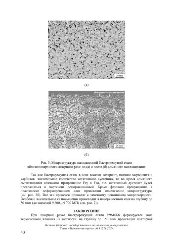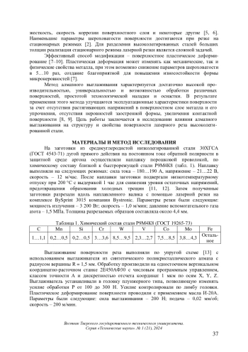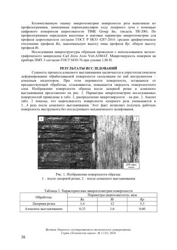Статья: ВЛИЯНИЕ АЛМАЗНОГО ВЫГЛАЖИВАНИЯ НА СТРУКТУРУ И СВОЙСТВА ПОВЕРХНОСТИ ЛАЗЕРНОГО РЕЗА ВЫСОКОЛЕГИРОВАННОЙ СТАЛИ (2024)