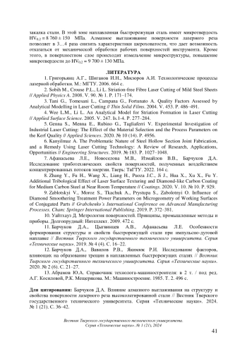 БАРЧУКОВ Д. А. ВЛИЯНИЕ АЛМАЗНОГО ВЫГЛАЖИВАНИЯ НА СТРУКТУРУ И СВОЙСТВА ПОВЕРХНОСТИ ЛАЗЕРНОГО РЕЗА ВЫСОКОЛЕГИРОВАННОЙ СТАЛИ // ВЕСТНИК ТВЕРСКОГО ГОСУДАРСТВЕННОГО ТЕХНИЧЕСКОГО УНИВЕРСИТЕТА. СЕРИЯ: ТЕХНИЧЕСКИЕ НАУКИ. 2024. № 1 (21)