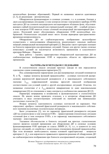 2. Катулев А.Н., Храмичев А.А., Гузенко О.Б. Критерий и алгоритм обнаружения динамического объекта на сложном фоне по точечному слабоконтрастному изображению оптико-электронного прибора // Автометрия. 2015. Т. 51. № 2. С. 38-48. EDN: TSZEWB