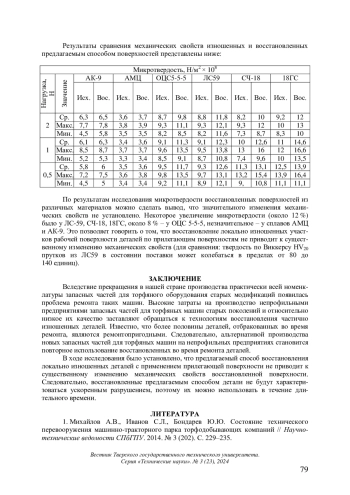 1. Михайлов А.В., Иванов С.Л., Бондарев Ю.Ю. Состояние технического перевооружения машинно-тракторного парка торфодобывающих компаний // Научно-технические ведомости СПбГПУ. 2014. № 3 (202). С. 229-235.