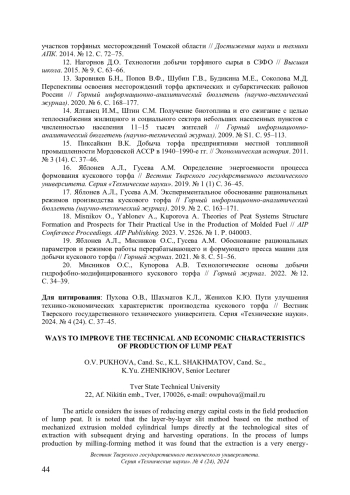 18. Misnikov O., Yablonev A., Kuporova A. Theories of Peat Systems Structure Formation and Prospects for Their Practical Use in the Production of Molded Fuel // AIP Conference Proceedings. AIP Publishing. 2023. V. 2526. № 1. P. 040003. EDN: EQWHBJ