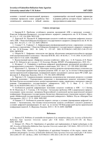 Журнал: ИЗВЕСТИЯ КАБАРДИНО-БАЛКАРСКОГО ГОСУДАРСТВЕННОГО АГРАРНОГО УНИВЕРСИТЕТА ИМ. В. М. КОКОВА