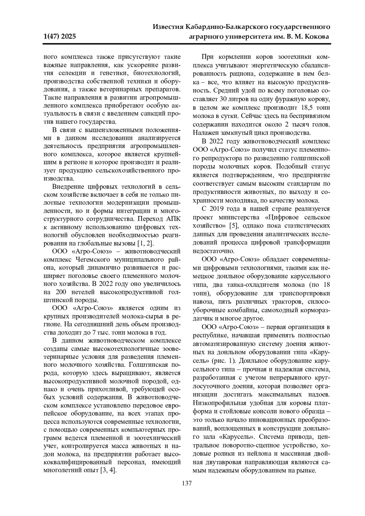 ПИЛОВА Ф. И. СОВРЕМЕННОЕ СОСТОЯНИЕ ТЕХНОЛОГИЧЕСКОЙ И ЦИФРОВОЙ ОБЕСПЕЧЕННОСТИ ПРЕДПРИЯТИЯ АГРОПРОМЫШЛЕННОГО КОМПЛЕКСА // ИЗВЕСТИЯ КАБАРДИНО-БАЛКАРСКОГО ГОСУДАРСТВЕННОГО АГРАРНОГО УНИВЕРСИТЕТА ИМ. В. М. КОКОВА. 2025. № 1 (47)