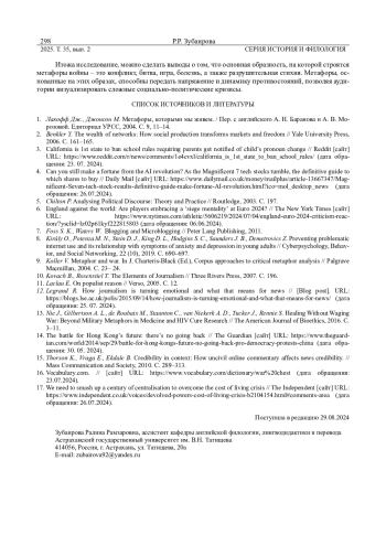 15. Thorson K., Vraga E., Ekdale B. Credibility in context: How uncivil online commentary affects news credibility. // Mass Communication and Society, 2010. C. 289-313.