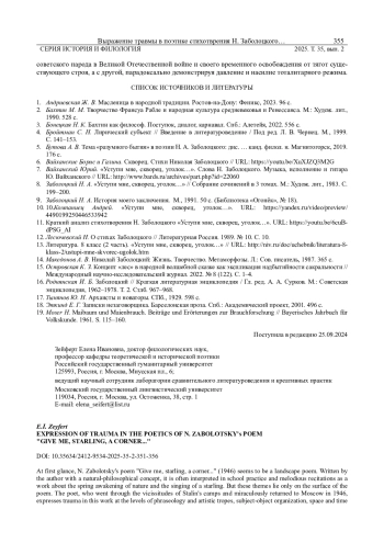 5. Бутова А. В. Тема “разумного бытия” в поэзии Н. А. Заболоцкого: дис. … канд. филол. н. Магнитогорск, 2019. 176 с. EDN: UAEEAS