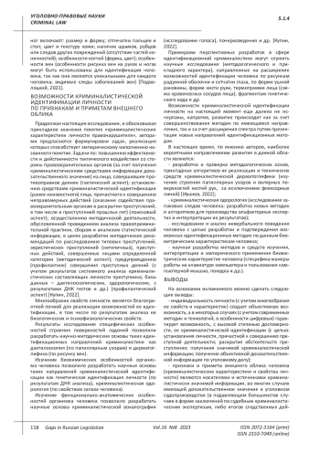 Статья: СОВРЕМЕННЫЕ ВОЗМОЖНОСТИ КРИМИНАЛИСТИЧЕСКОЙ ИДЕНТИФИКАЦИИ ЛИЧНОСТИ ПО ПРИЗНАКАМ И ПРИМЕТАМ ВНЕШНЕГО ОБЛИКА, С УЧЕТОМ ИСПОЛЬЗОВАНИЯ ИННОВАЦИОННЫХ ЦИФРОВЫХ ТЕХНОЛОГИЙ (2023)