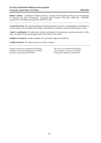 Данная работа посвящена определению изменения аминокислотного состава среды спиртового сусла, осахаренного солодом и поверхностной культурой плесени, до и после пастеризации. Исследования проводились в ООО «Премиум» и на кафедре «Технология производства и переработки сельскохозяйственной продукции» Кабардино-Балкарского ГАУ в 2023-2024 гг. В качестве объектов исследований служили осахаренное сусло до и после пастеризации, бражка, пшеничный солод, культура Aspergillus oryzae. Исследовали кукурузное сусло, осахаренное в первом варианте смесью солодов (ячмень 35, овес 35, просо 30%); во втором - поверхностной культурой плесени Aspergillus oryzae. Установлено, что пастеризация сусла, осахаренного различными агентами, сказывается в большей степени на среде, осахаренной поверхностной культурой плесени Aspergillus oryzae. В этом случае при пастеризации теряется 26,5% аминокислот, в то время как в осахаренном солодом сусле 14,2%. Тенденция к убыли наблюдается у всех шести кислот, за исключением L-лейцина, содержание которого в пастеризованном сусле, осахаренном культурой плесневого гриба, тоже несколько ниже, чем в пробе с пастеризованным суслом. Определено, что при пастеризации среды аминокислотный состав ее существенно не изменяется, однако температурному воздействию больше подвергаются аминокислоты в сусле, осахаренном поверхностной культурой плесневых грибов Aspergillus oryzae. Общее содержание аминокислот в крахмалсодержащих средах, осахаренных солодом и поверхностной культурой плесени, после пастеризации примерно одинаково и достаточно для обеспечения аминным азотом дрожжегенерацию и брожение.