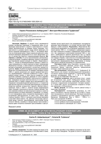 Введение. В данной статье анализируется влияние последствий Революции и Гражданской войны на деформацию представлений о морали и нравственности в коллективном бессознательном на примере города Георгиевск. Рост преступности в условиях малого города южной провинции стал частью городской повседневности в 1920-х гг. как реакция общества на исторический кризис. Новая социальная реальность предполагала изменения повседневности не только обывателей, но и тех, кто должен был бороться с криминализацией общества.