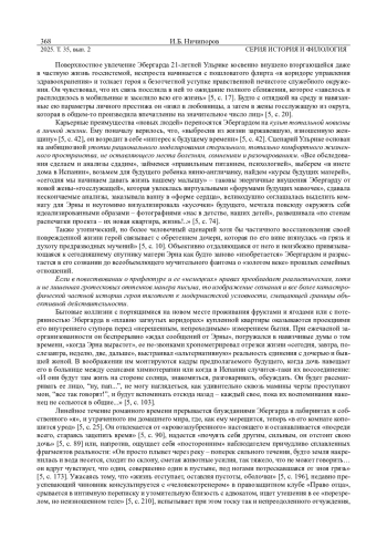 Предметом анализа в статье являются особенности психологизма в романе «Дом из парафина» современной армянской русскоязычной писательницы Анаит Сагоян, способы изображения внутренней душевной жизни личности и репрезентации травматического опыта на разных уровнях художественной организации текста. На уровне макропоэтики романа психологизм проявляется в усложненной структуре как пространственной (субъективное восприятие реалий Тбилиси, Командорских островов, Берлина), так и временной (дискретность) организации. На уровне микропоэтики психологическое начало связывается с мотивами смерти, тоски, печали, одиночества, фальши. Значимым образом в романе становится образ дома, который связывается с одиночеством, отсутствием душевного тепла и уюта. Способами изживания травматического опыта для героев романа становятся воспоминания и ассоциации. Благодаря рекурсивной повествовательной технике показывается предельно субъективное самосознание и самоощущение героев романа. Делаются выводы об экзистенциальной направленности психологизма.