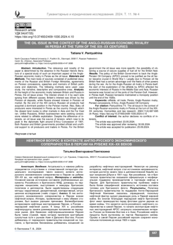 Введение. Актуальность и новизна работы определяется отсутствием в отечественной литературе специального исследования такого важного аспекта англо-русского экономического соперничества в Персии на рубеже XIX–XX вв., как нефтяной вопрос.