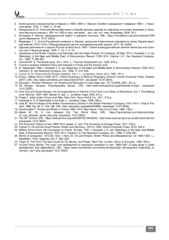 27. Younes Parsa Benab. The origin and development of imperialist contention in Iran; 1884-1921. A case study in under development and dependency. URL: https://www.iranchamber.com/history/articles/origin_development_imperialist_contention_iran1.php (accessed: 10.07.2024).