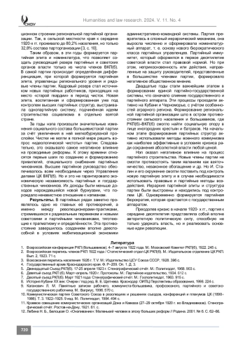 Введение. Актуальность рассматриваемой темы обусловлена тем, что опыт подготовки, обучения, формирования кадрового потенциала власти в условиях реформ 1920-х гг. востребован современной Россией. Он позволяет, обратившись к историческому опыту, определить основные приоритетные направления в подготовке управленцев способных работать и принимать решения в условиях ограниченных ресурсов. Целью статья является анализ состоянии партийных организаций регионов Северного Кавказа, которые в 1920-х гг. были единственными источниками формирования кадрового потенциала Советской власти. От их качественно состава, а именно от уровня грамотности, управленческого опыта зависел успех реформ.