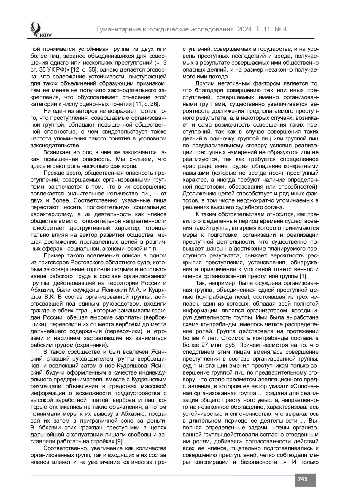 Анализ. В статье проводится исследование преступлений, совершаемых организованными группами, связанного с рассмотрением вопросов оценки общественной опасности преступлений, совершаемых организованными группами, которые не нашли достаточного отражения в научной литературе. Согласно проведенному исследованию нормативной базы, в уголовном законодательстве отсутствует определение организованной группы. Но при этом совершение преступления в составе организованной группы обладает повышенной степенью общественной опасности, что определяется рядом факторов различного характера, рассмотренных в статье. Данное обстоятельство требует выработки новых теоретических и прикладных подходов к борьбе с таким феноменом как организованная преступность, в том числе связанных с повышенной общественной опасностью этого явления.